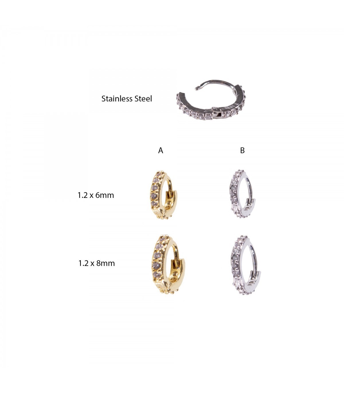 Aros de acero de 1,2 mm de ancho con circonitas blancas incrustadas y cierre click.