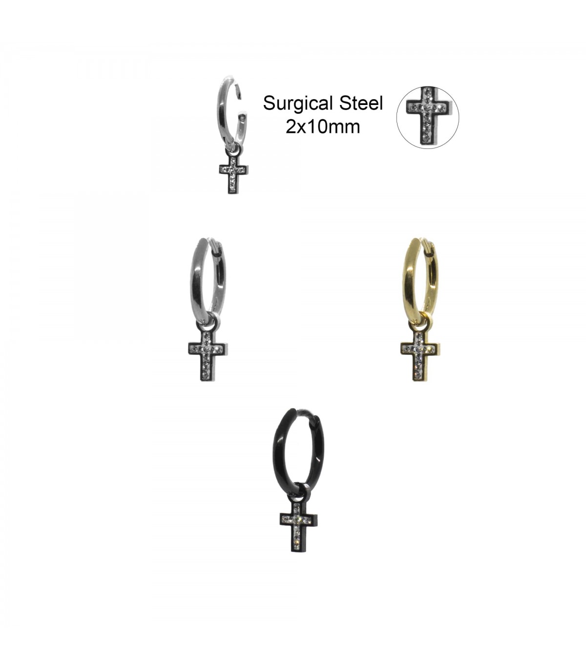 Aro de acero ancho de 4 mm con cierre click y diámetro de 9 mm con relieve exterior en forma de pirámide