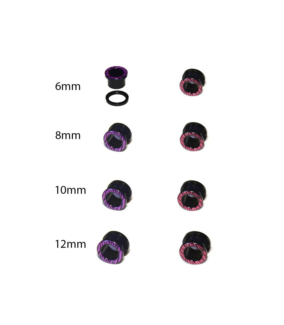 Dilataciones Flesh Tunnel, de acrilico. Diferentes tamaños: 6mm, 8mm, 10mm, 12mm. En dos tonos. Rojo - Negro, Violeta - negro
