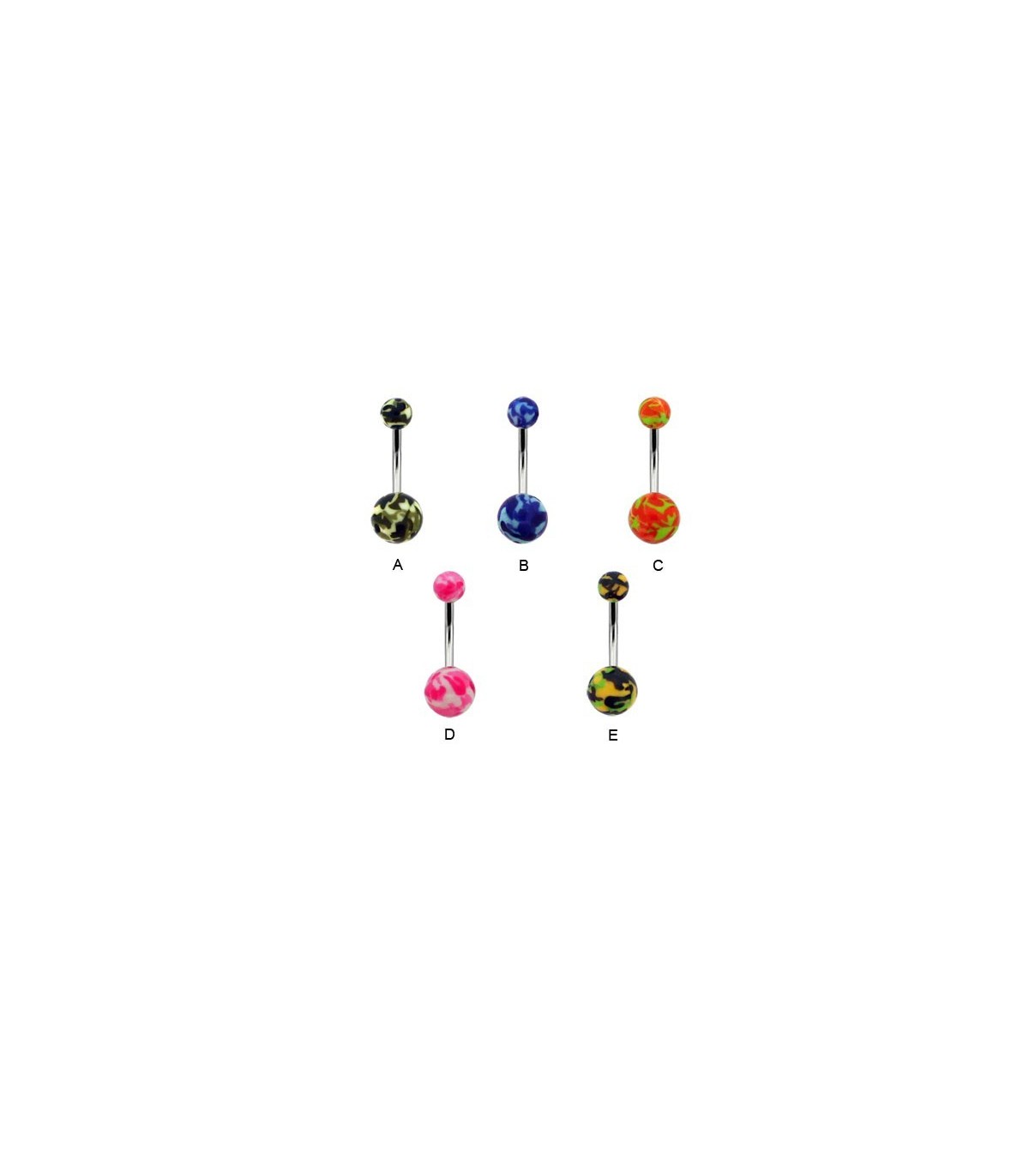 Piercing de acero para el ombligo con parte de arriba que es cierra en rosca. Lleva una circonita arriba y cinco abajo siendo la circonita central más grande.