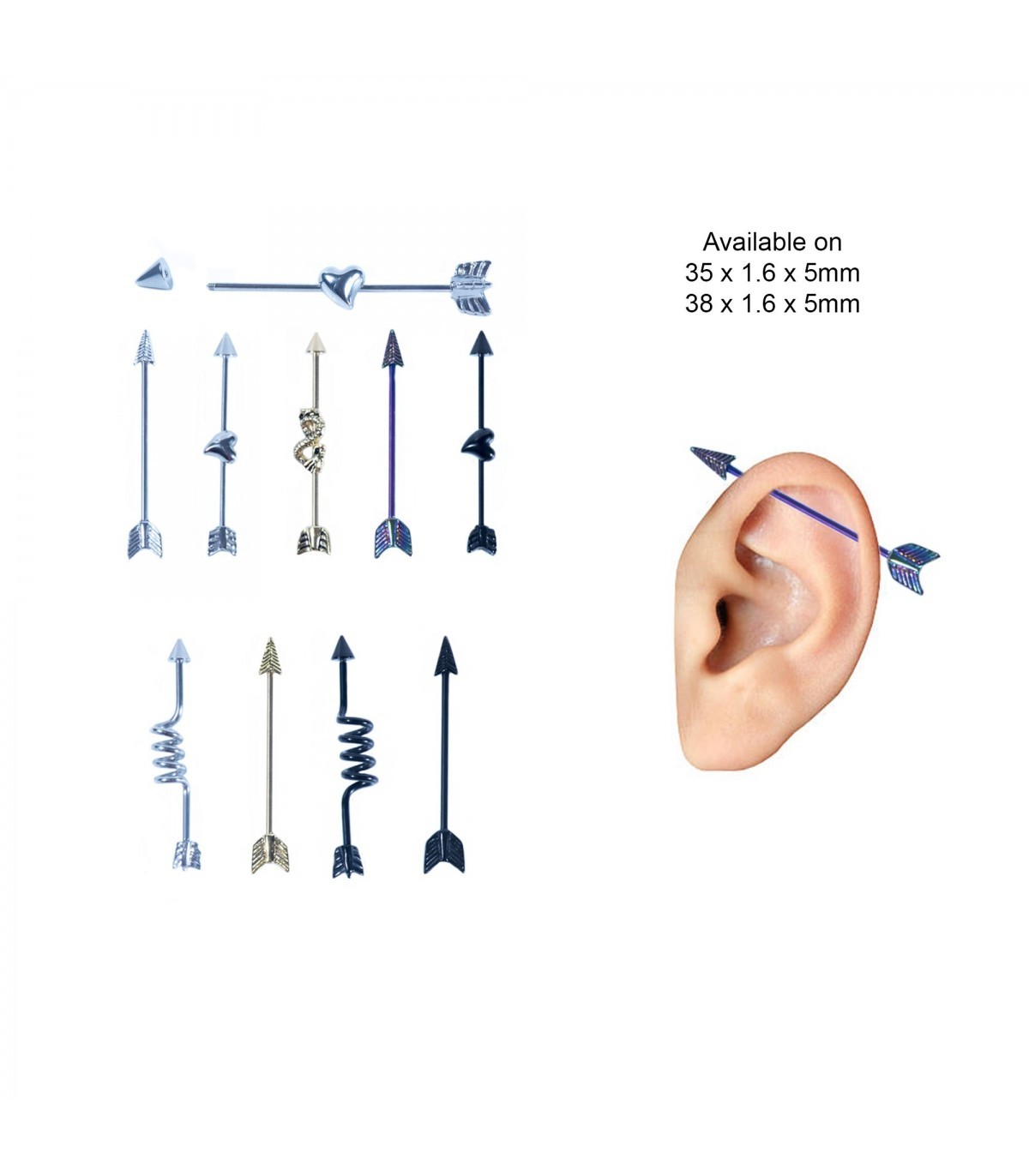 Barbell industrial en acero quirúrgico compuesto por una barra de 1,6 mm con efecto flecha (punta y cola)
