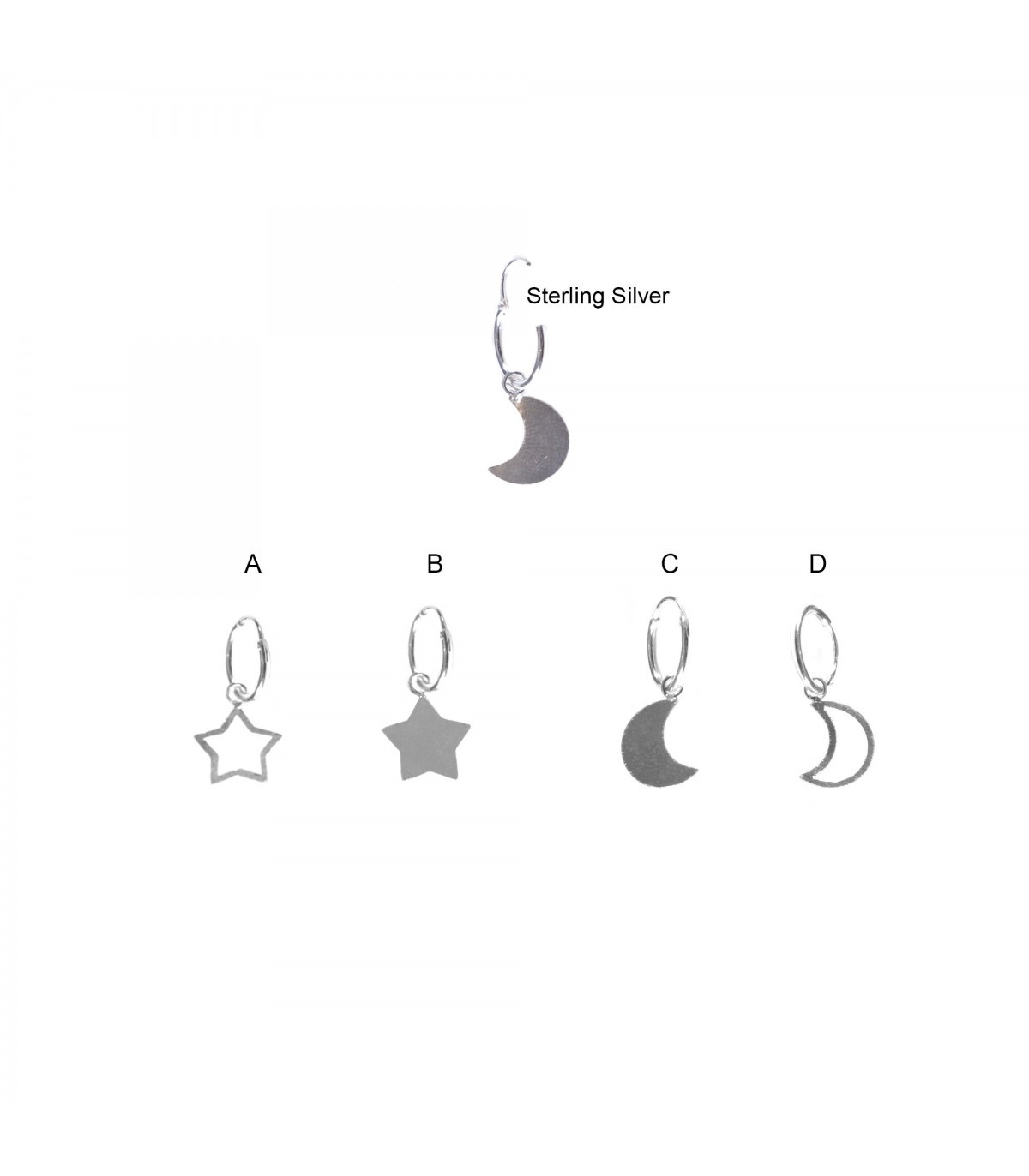 Aro de plata con colgante en forma de luna y estrella, en negativo y positivo.