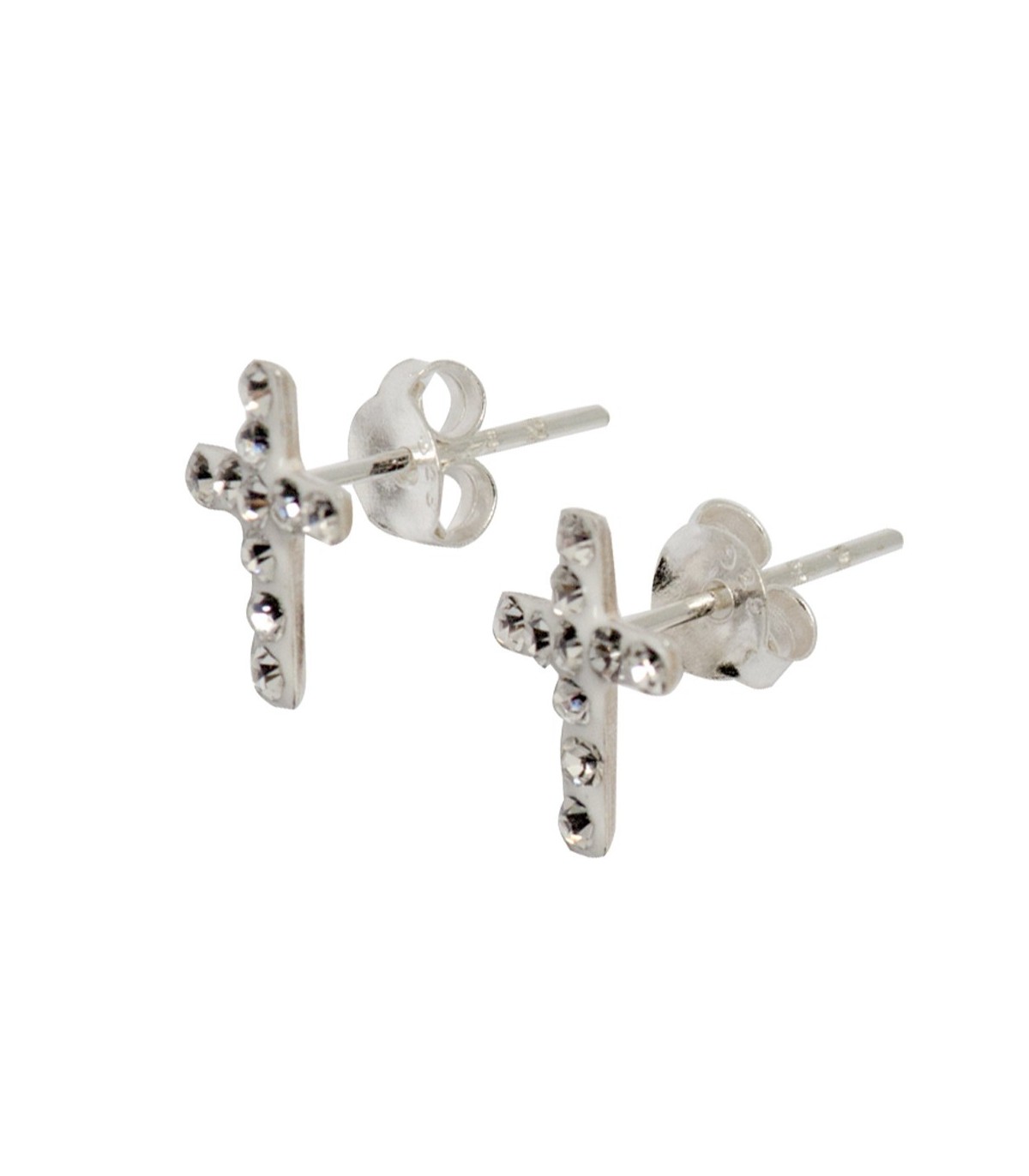 Pendientes de plata de ley. Diseño de cruz con cristales swarovski aplicados.