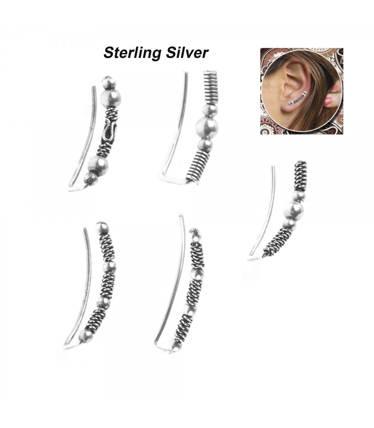 Pendiente de plata con centro esmaltado y colgante de pluma