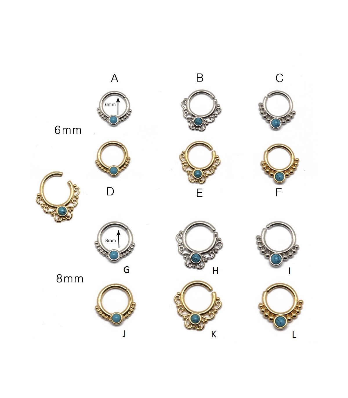 Aros de acero, con barra de 1,2 mm y diámetro de 10 mm, con diseños estilo Bali y cierre bisagra que puede usarse para el daith,Tragus, Helix, para la ceja, para el labio, para la nariz y como pendiente normal.(Precio...