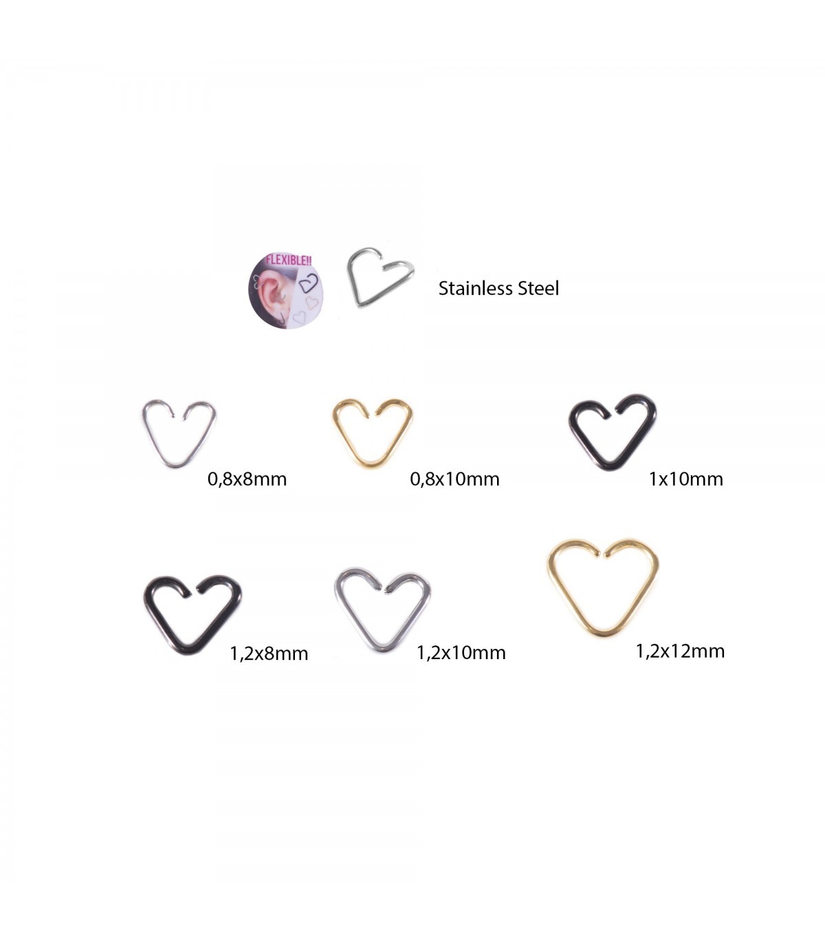 Tragus/Helix de acero flexible que también se puede usar como pendiente normal, en forma de corazón