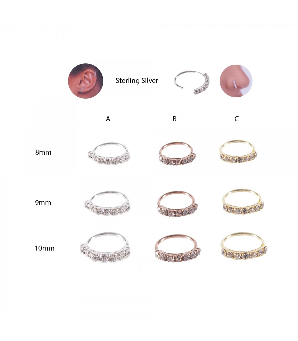 Aro/Nariz/Helix plata con piedras - ARN121D