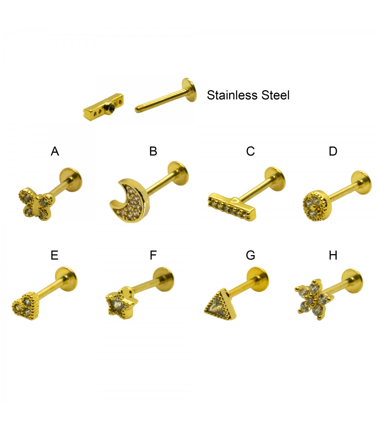 Aro de nariz de plata chapado en oro que también se puede usar como pendiente de cartílago.con pequeño motivo en el centroDos tamaños: 8 y 10 mm(Precio por unidad)