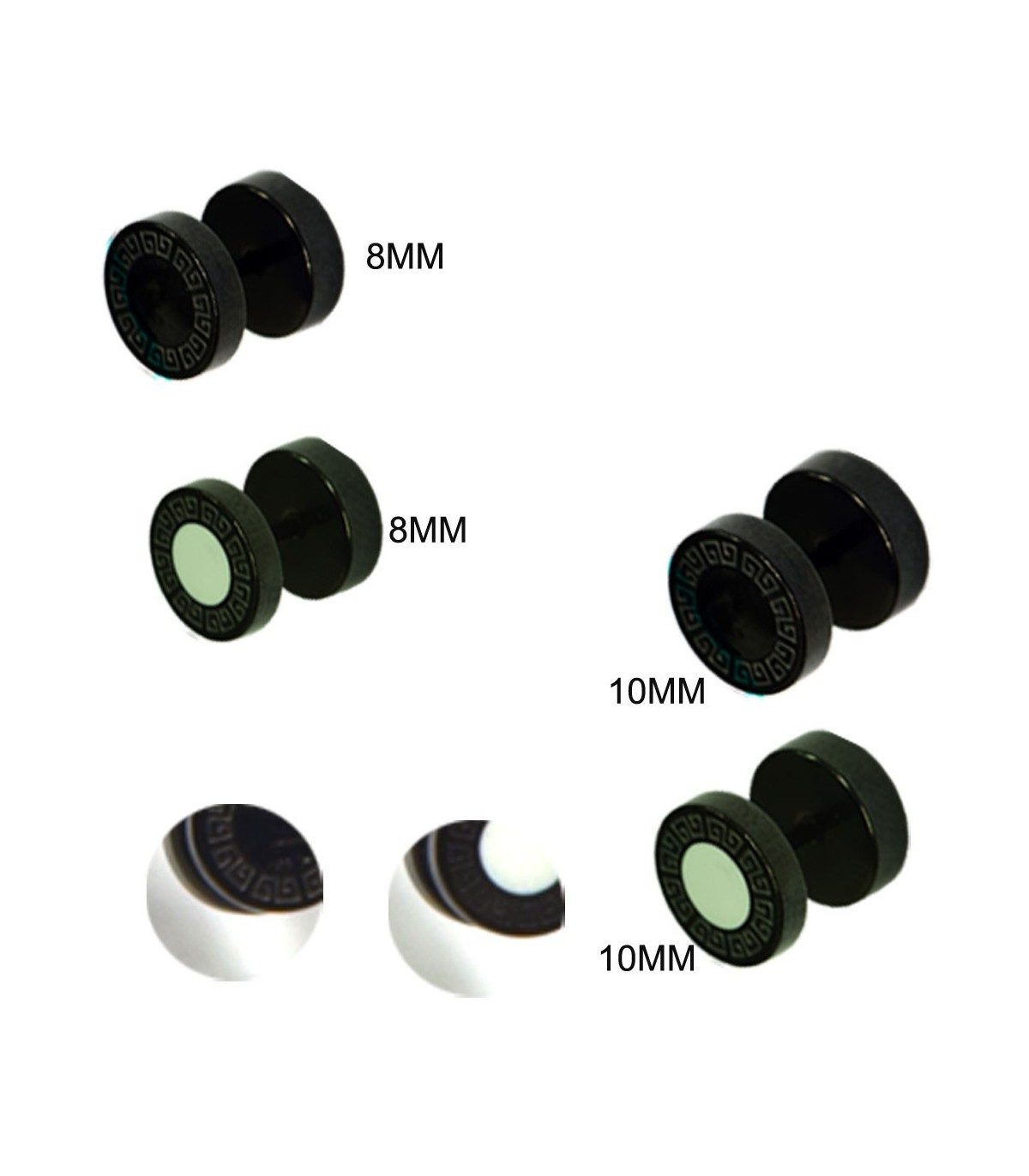 Fausse dilatation d'acier lisse et noir. Réversible. Unisexe.boucle d'oreille pour garçon . Trois tailles: 6, 8, 10 mm