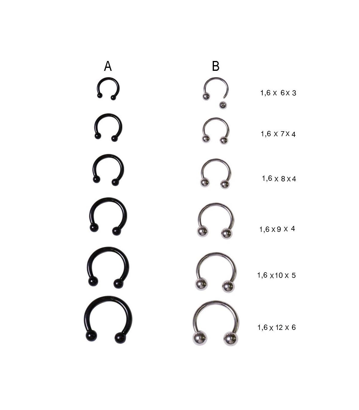 Septum cerceaux ouverts en acier de 1,6 mm qui peuvent être utilisés aussi comme boucles d'oreille