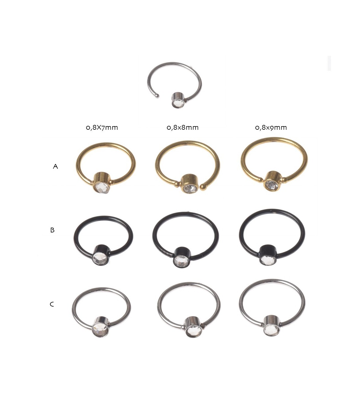 Anneau de nez de l'argent 925/100 avec ballon ou blocage. Dans deux tailles différentes: 10mm 8mm