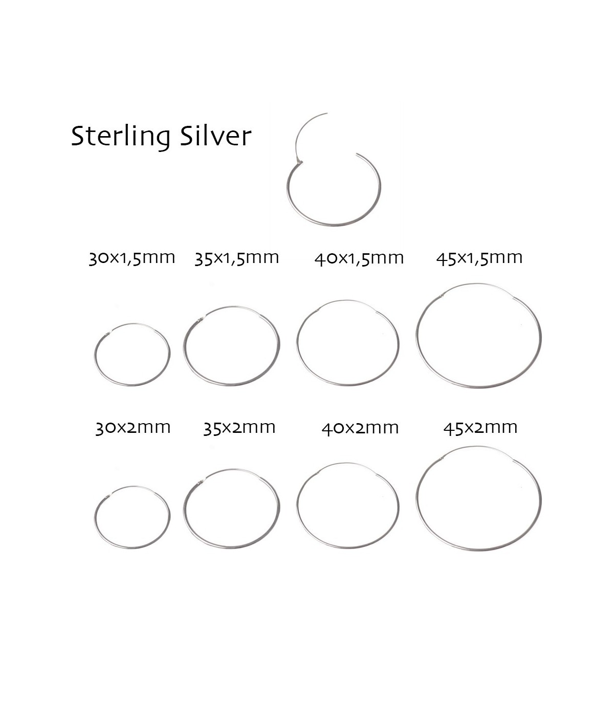 Cerceau grand en argent, de diamètre 30, 35, 40 et 45 mm