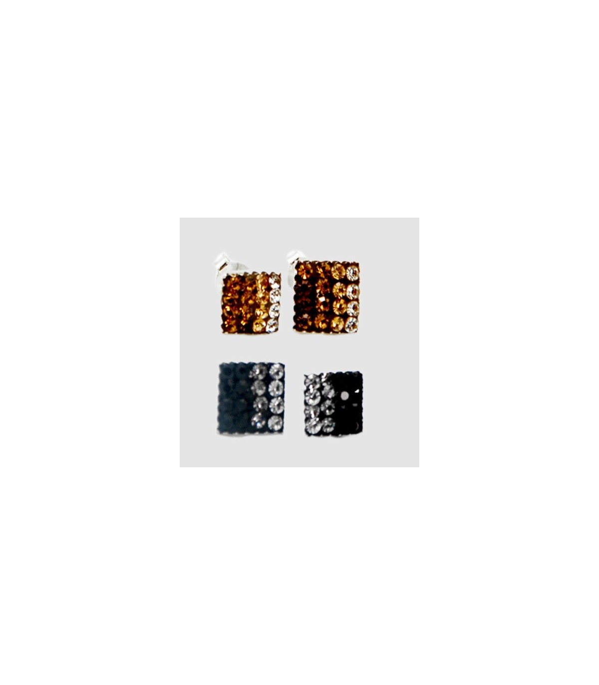 Boucles d'oreilles Argent 8mm carré avec des pierres de différentes couleurs.