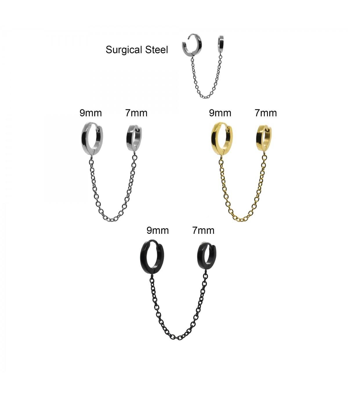 Labret, Tragus ou Helix en acier avec bare de 1,2 mm